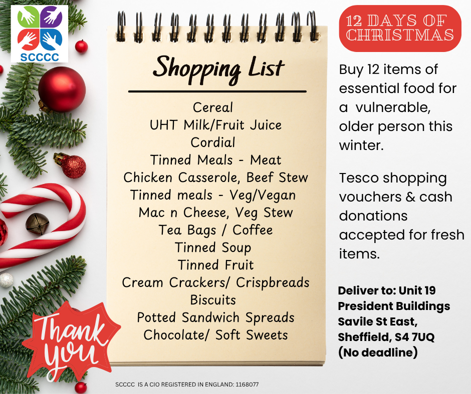 If you would like to take part, please deliver your food to our HQ - SCCCC Unit 19, President Buildings, Savile Street East, SHEFFIELD, S4 7UQ (if you are unable to drop them off, please contact: karen@scccc.co.uk